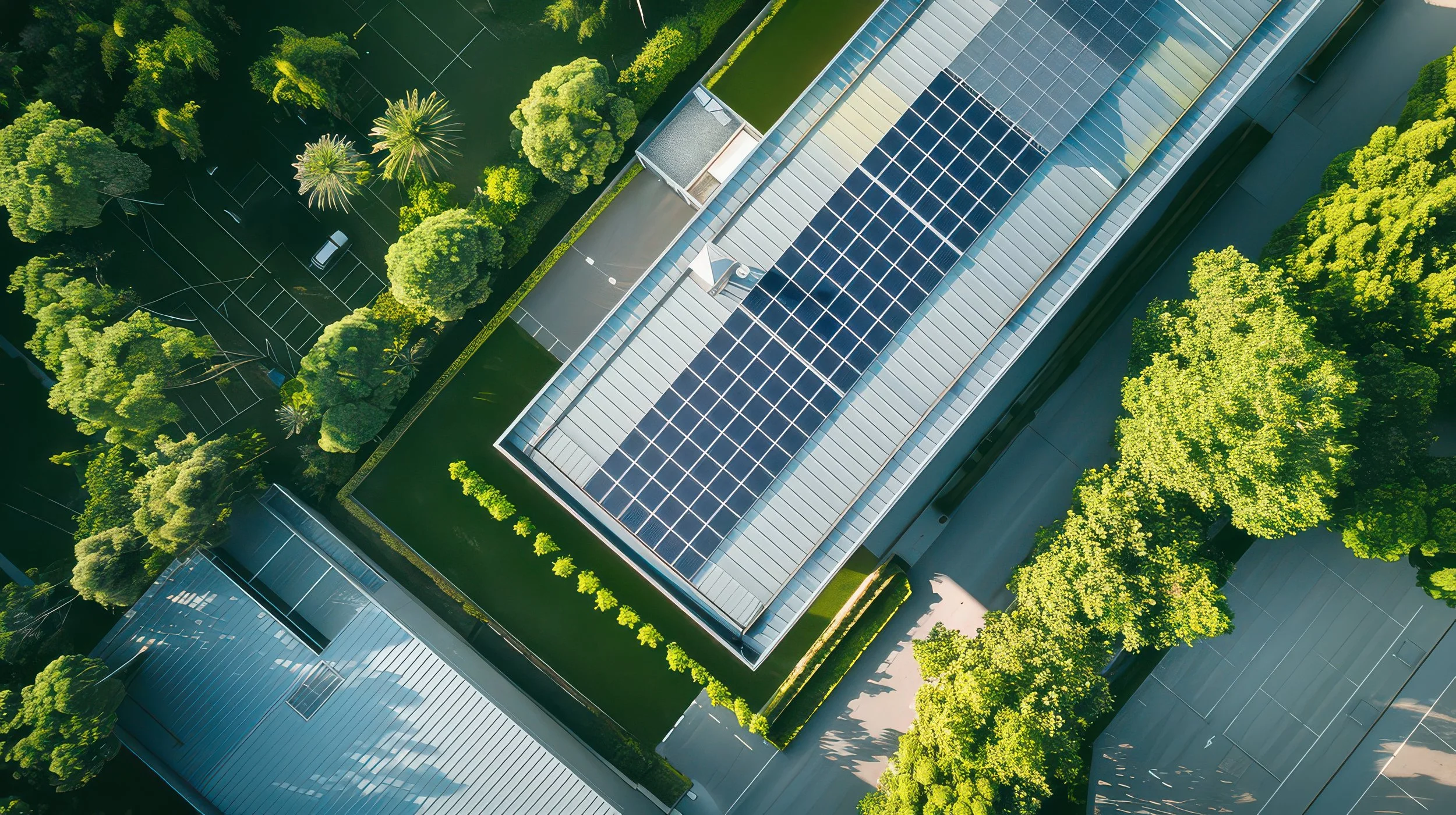 屋根上、駐車場などへ太陽電池を設置し、自家消費モデルで提供します。